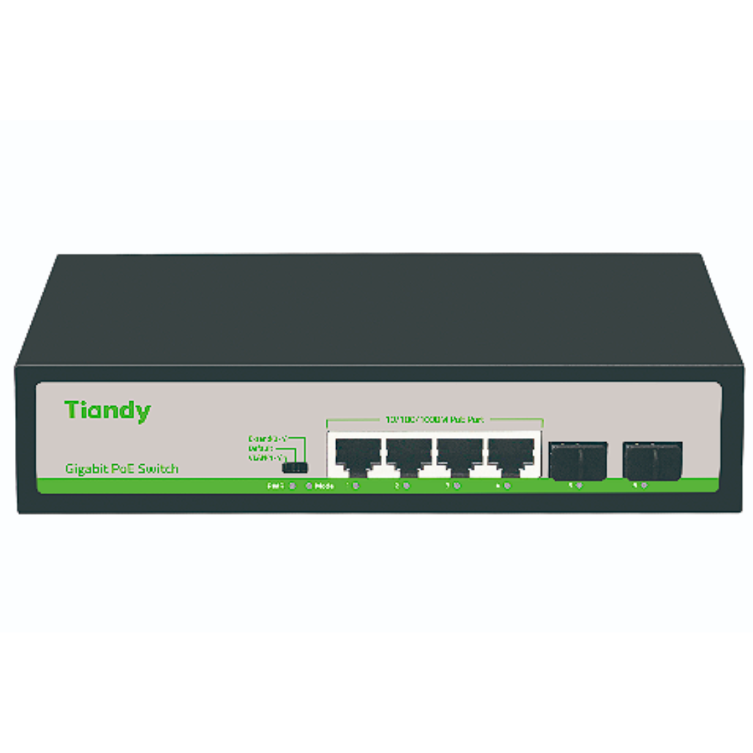 · 4 порта PoE 10/100/1000 Мбит/с + 2 порта SFP 1000 Мбит/с
